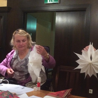 Ein beliebter Termin in unserem Jahreskalender, wenn auch in diesem Jahr etwas turbulent in der Vorbereitung und Organisation. Die Rückmeldung zur Teilnahme kamen schleppend. Am Ende waren wir dennoch fast zwwanzig Personen. Ulrike hat wieder einiges vorbereitet, so die aus Brottüten gebastelten Sterne, die ruckzuck fertig waren und bei jedem Gefallen fanden.